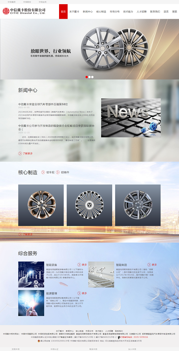 1988年,伴隨著改革開放的春風,中信人做出了一個重大決定,在渤海之濱秦皇島建造了中國大陸第一家鋁車輪制造企業----中信戴卡股份有限公司(以下簡稱中信戴卡),中國大陸第一只鋁車輪在這里誕生。