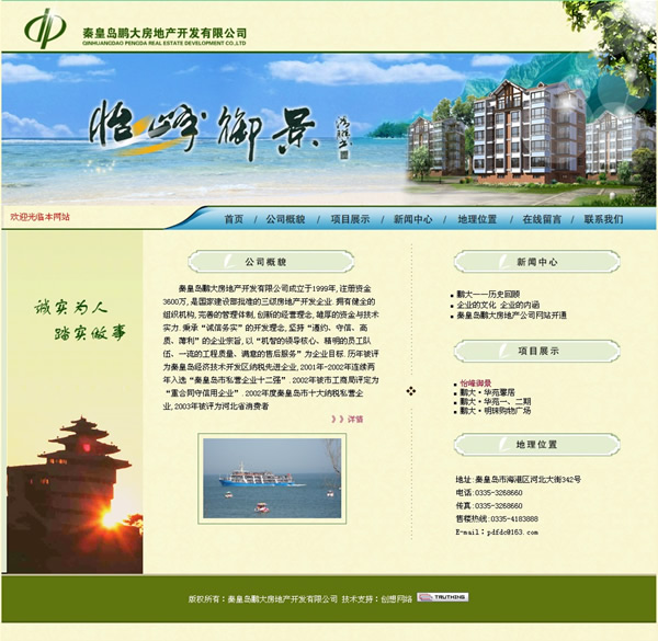 秦皇島鵬大房地產(chǎn)開發(fā)有限公司成立于1999年,注冊資金3600萬,是國家建設(shè)部批準的三級房地產(chǎn)開發(fā)企業(yè)。擁有健全的組織機構(gòu),完善的管理體制,創(chuàng)新的經(jīng)營理念,雄厚的資金與技術(shù)實力.秉承“誠信務(wù)實”的開發(fā)理念,堅持“遵約、守信、高質(zhì)、薄利”的企業(yè)宗旨,以“機智的領(lǐng)導(dǎo)核心、精明的員工隊伍、一流的工程質(zhì)量、滿意的售后服務(wù)”為企業(yè)目標.歷年被評為秦皇島經(jīng)濟技術(shù)開發(fā)區(qū)納稅先進企業(yè),2001年-2002年連續(xù)兩年入選“秦皇島市私營企業(yè)十二強”.2002年被市工商局評定為“重合同守信用企業(yè)”.2002年度秦皇島市十大納稅私營企業(yè),2003年被評為河北省消費者